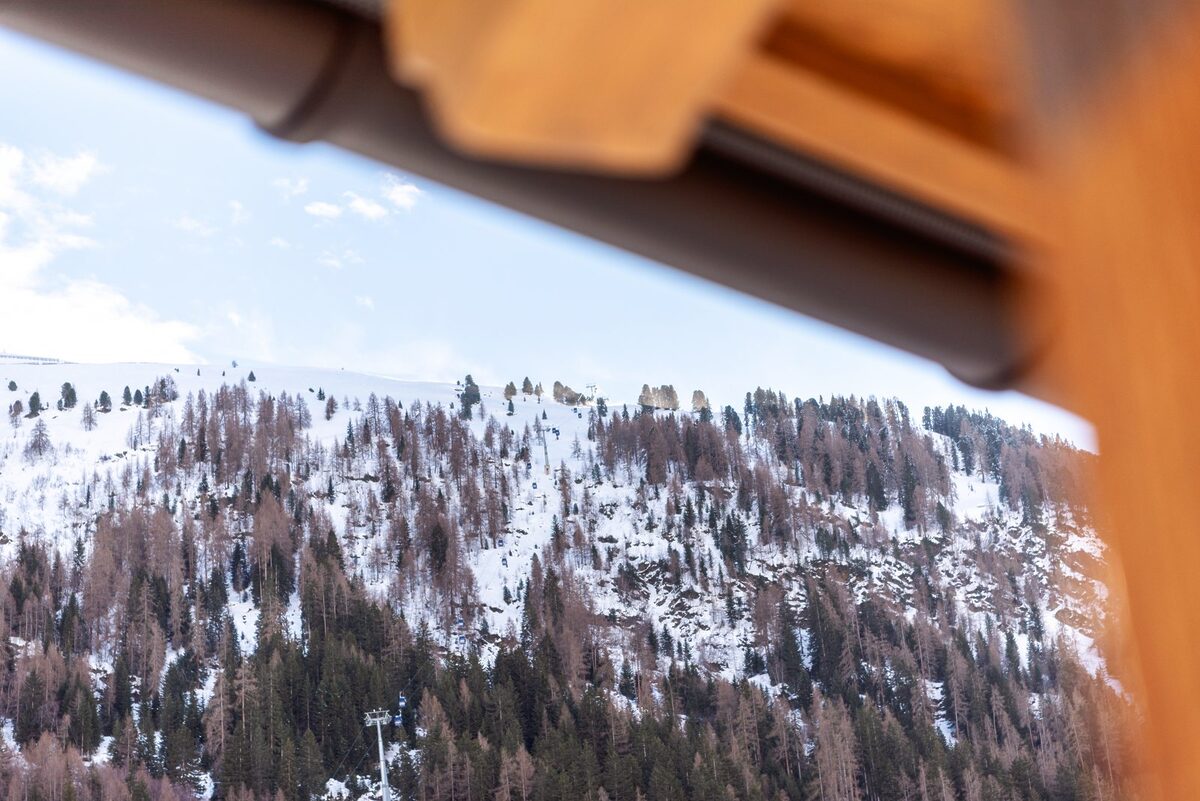 The main living area of apartment is found on its upper level. Sink into the roomy, soft sofa by the fireplace and enjoy some casual conversation, catching up on the day’s ski adventures. Authentic wooden furniture throughout creates a homely feel, with the dining table offering the perfect space for social mealtimes. The fully-equipped kitchen gives you everything needed to prepare the meals at the end of each day, on days when you aren’t out exploring the best restaurants in St Anton for dinner. Glass doors lead you out onto the spacious balcony, where you can gaze over the impressive mountain and piste views that surround apartment.