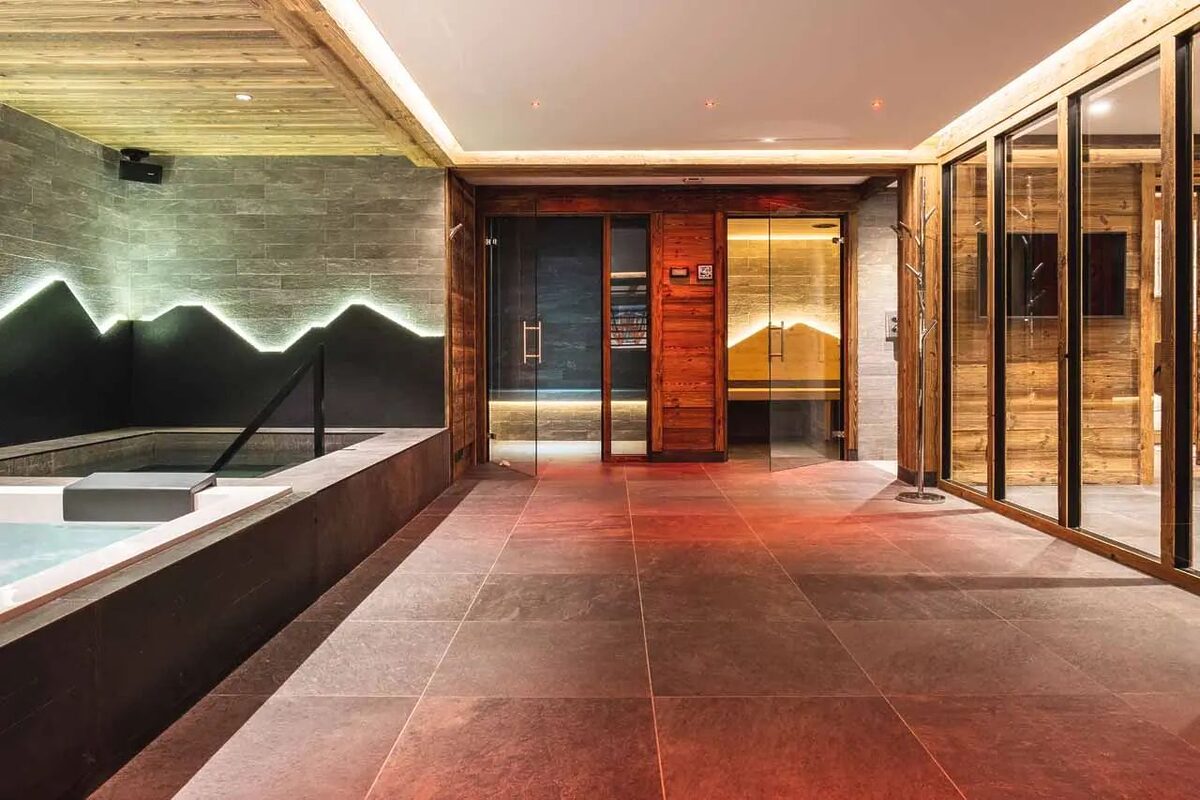 Tailor-made for relaxation, the chalet has an opulent spa area with a Jacuzzi, cold plunge pool, hammam and sauna – ideal for soothing any aching muscles after a day’s skiing. To maintain your fitness, a small well-equipped gym awaits, complete with rower, weights and weight bench as well as a TV. Further relaxation can be found in the home cinema which boasts a giant 82″ flat screen and BOSE 5.1 home cinema installation.