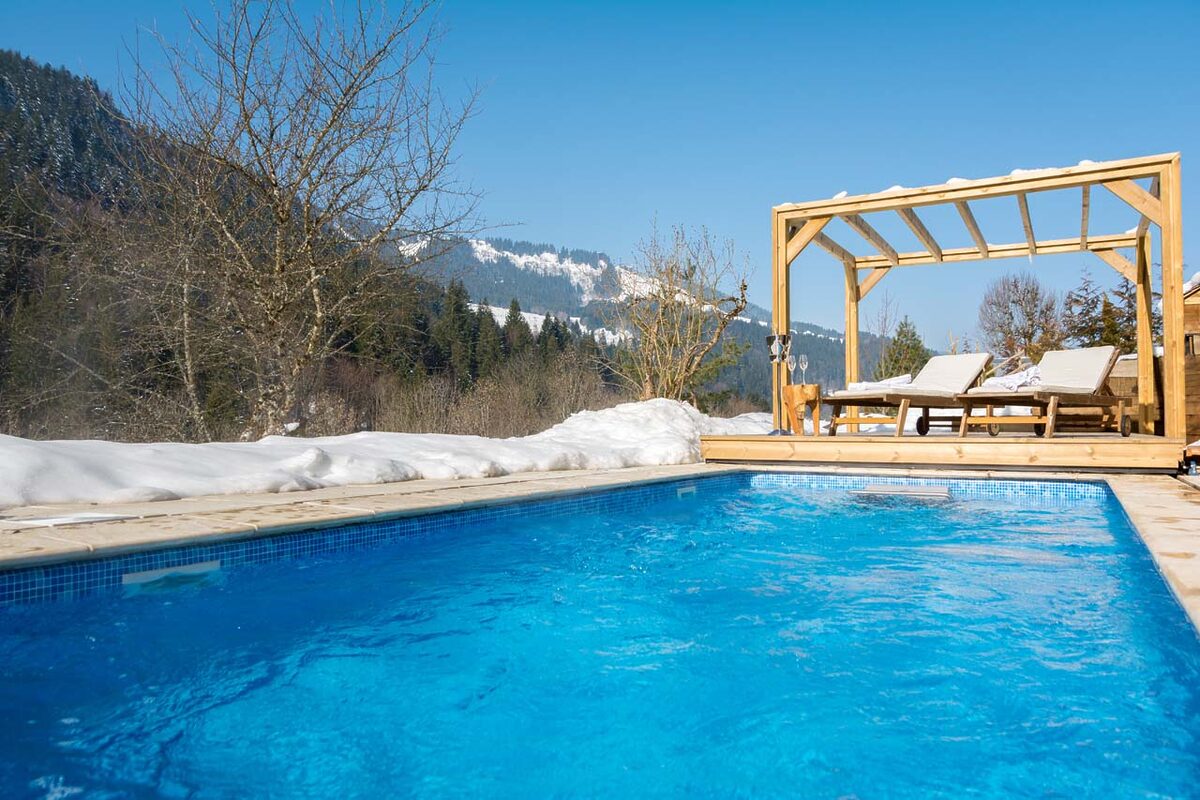 The chalet’s spa facilities are exceptional. A central relaxation area leads to a wet zone with a vaulted steam room and hydrotherapy area with power shower and massage jets. There is also a treatment room where you can enjoy a range of massage and beauty treatments. To top it off, a covered walkway leads to a deck with a sunken hot tub, cedar barrel sauna and a heated outdoor swimming pool.