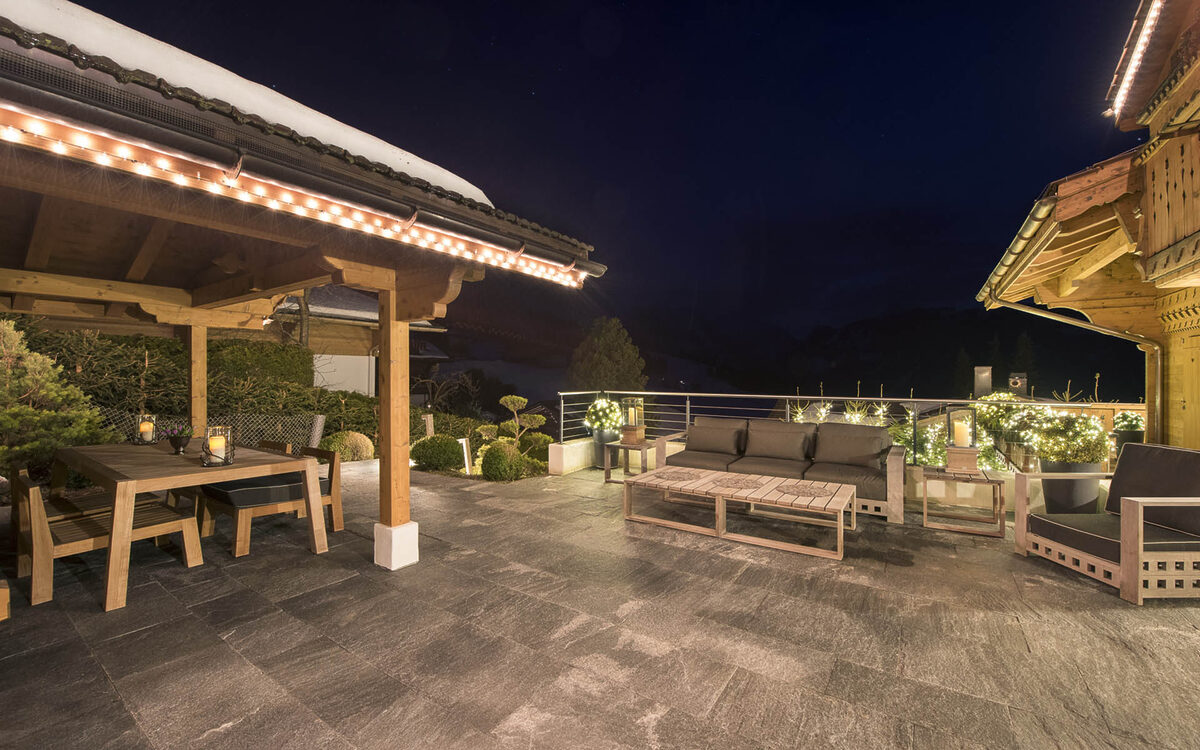 As well as the fabulous communal areas indoors, which are perfect for cosying up and chilling out, there’s also a wonderful outdoor terrace, where you can enjoy your ‘Alpen moment’ each morning, looking out onto the mountains as you eat your breakfast. It’s also the best spot in the property for a nightcap, we think.