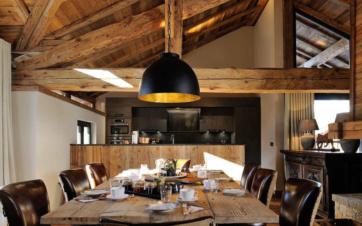 Recently renovated, the 130-year-old former Savoie stable is now a charming luxury ski chalet, created from beautiful woods and decked out with natural fabrics and antique furniture for a chic and welcoming atmosphere. In the main living room, a beautiful fireplace takes centre stage. Comfy sofas surround it and to one side is a lovely dining space, where you’ll be able to sit for long evenings with your fellow guests, over a delicious six-course tasting menu prepared by your talented private chef.