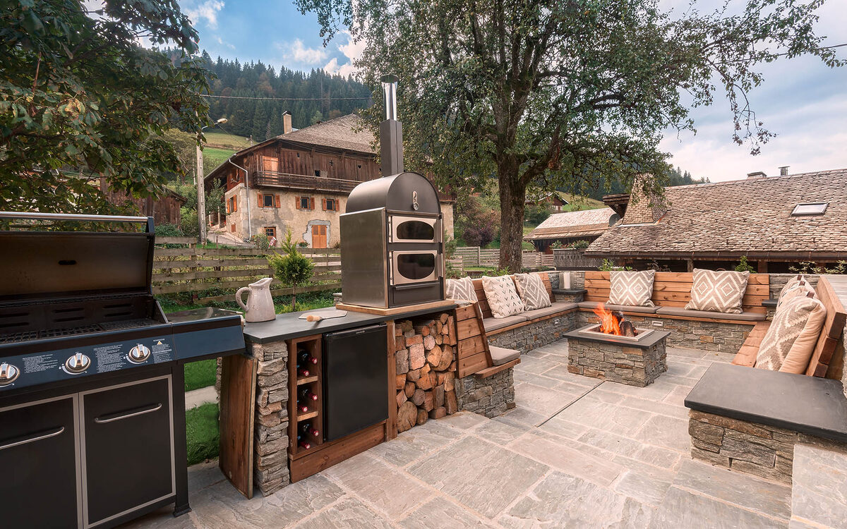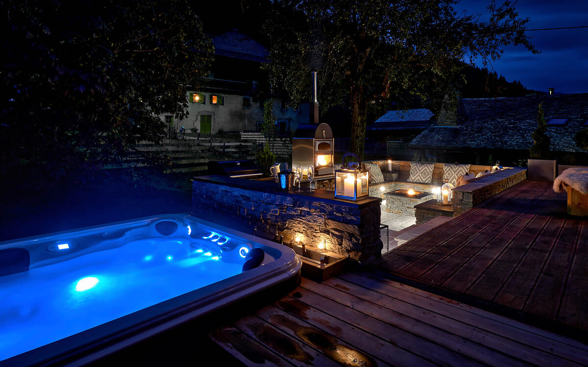 This luxury ski chalet has been designed to make the very most of its outdoor spaces with a unique outdoor deck area. Should you choose to dine ‘al fresco’, a barbecue, pizza oven and additional outdoor dining area have been designed for both winter and summer use. Sit back and enjoy the mountain stars while your chef and chalet host prepare and serve your evening meal – an experience not to be missed. There is also an outdoor lounge & bar, with fire pit, hammocks and loungers. Then, of course, there is the outdoor hot tub, best enjoyed with a glass of complimentary champagne and a few friends.