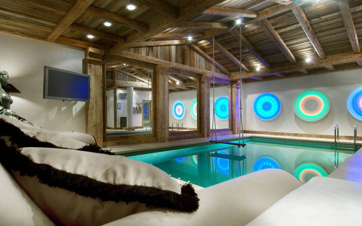This beautiful luxury ski chalet in Courchevel 1850 has been built in a traditional Savoyard style using old wood, slate and stonework. It has been finished to the highest standard and the wonderful warm cosy atmosphere is complemented with state of the art entertainment systems and a beautiful swimming pool.