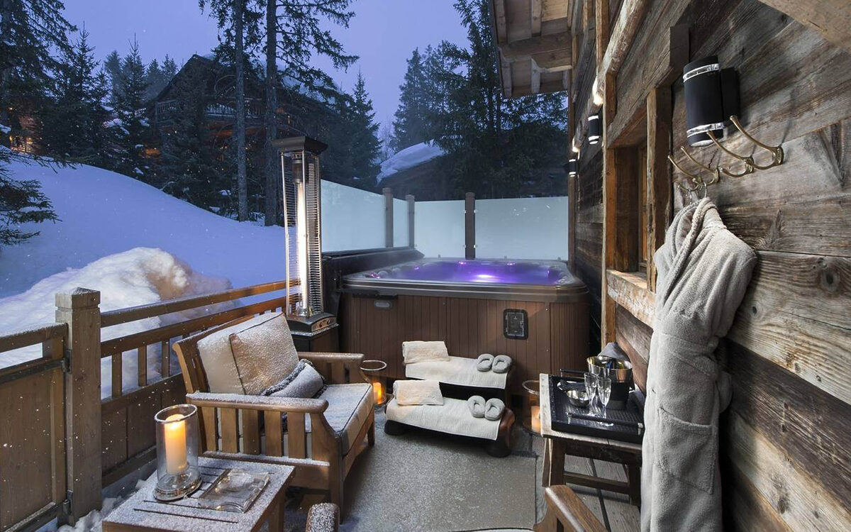 Relaxing after your adventures on the mountain will be a highlight of the day. You’ll find a beautiful spa area with gorgeous indoor swimming pool, complete with a swing over the water, as well as a hammam, gym and superb cinema room.