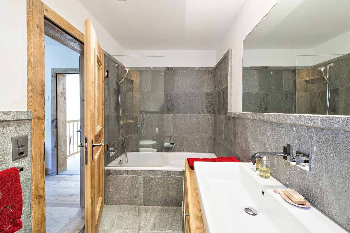 The chalet is an ideal family property with homely and welcoming décor and multiple living spaces. There’s a large living room on the top floor of the property with comfortable seating areas, a fireplace and a television corner. The dining room and kitchen are situated on the entrance level to the property and open out to a garden and unspoilt views to the lower part of the Engadine valley.