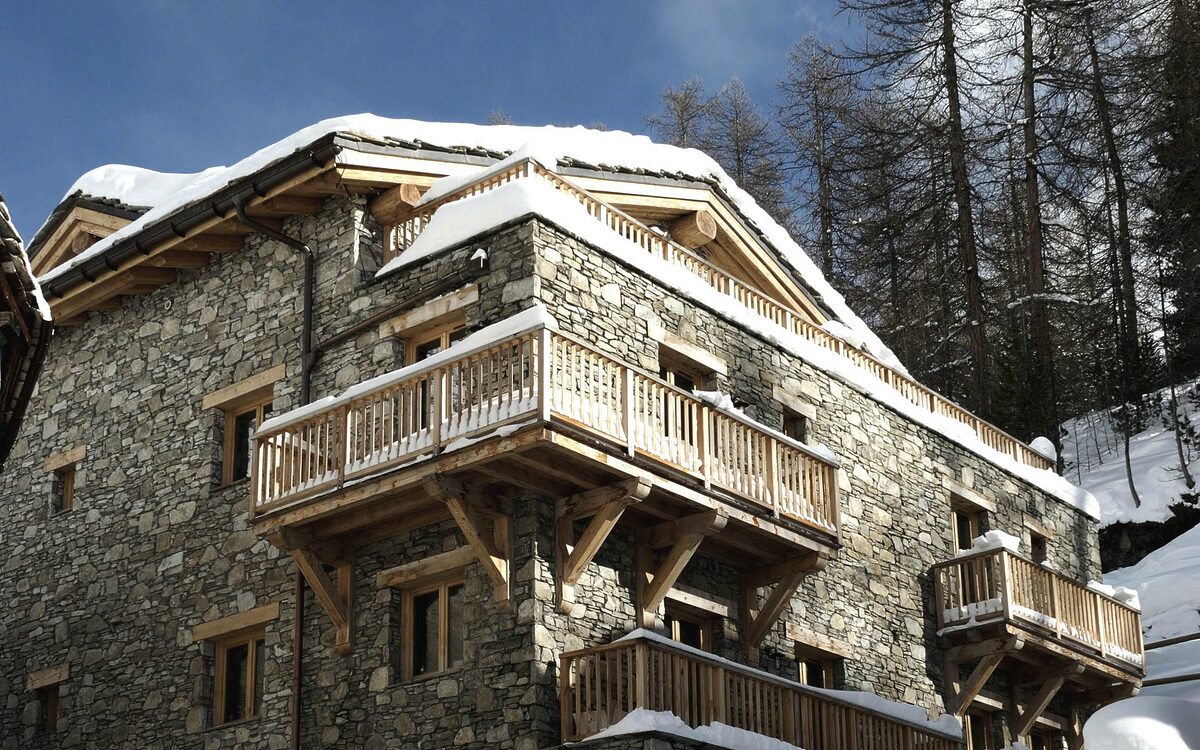 Beautifully finished inside and out in light grey vanoise stone and mountain larch the two areas blend together well. There are two main entrances, one for the main chalet and one for the apartment and they are just three steps apart, with your complimentary slippers you wont find the transition cumbersome. The main entrance is on the ground level where you will find a heated ski room for the chalet with good storage and boot warmers. Here you will also find 2 covered parking spots, a rarity in the valley, if you require more its a large garage so please just ask.