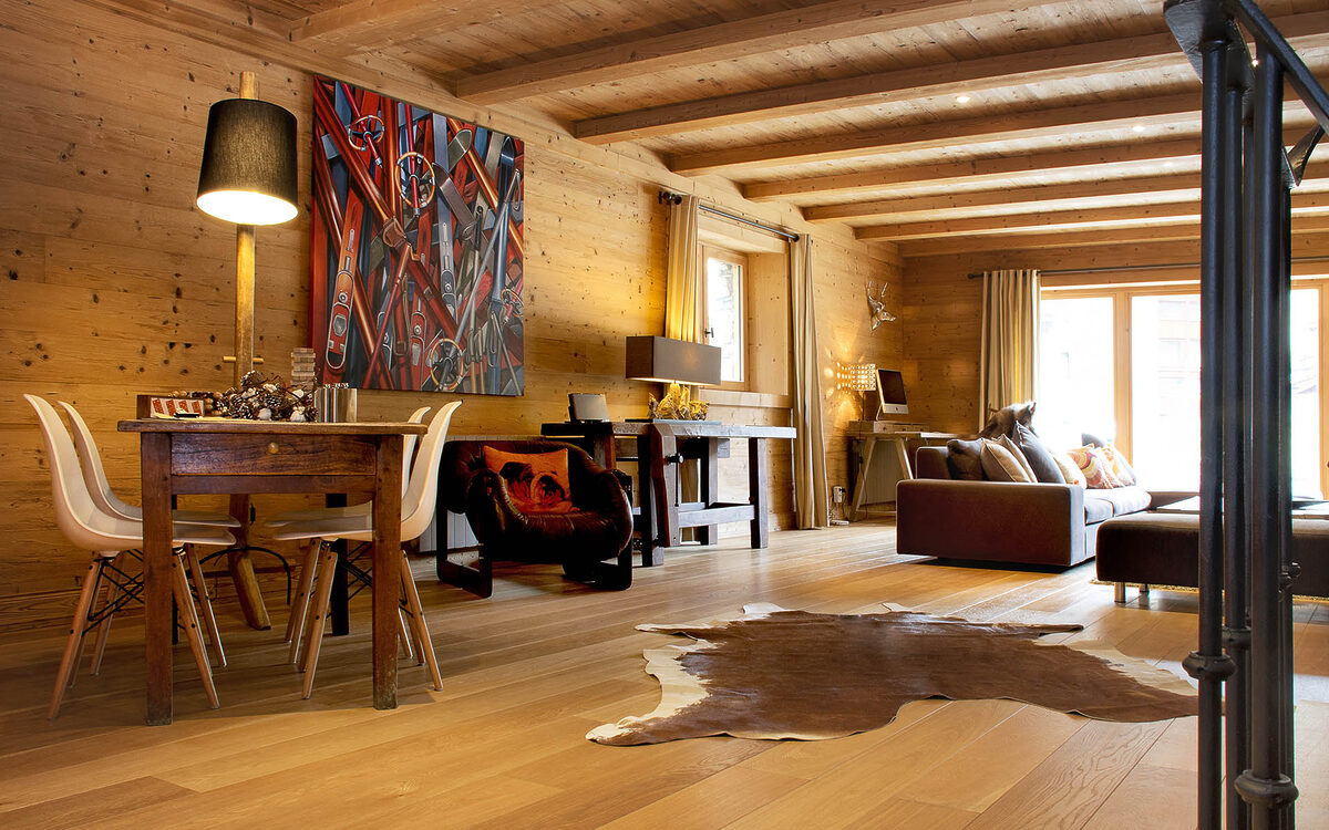 The chalet is fresh and contemporary and gives an overriding feeling of spaciousness. The property is broken down into two main spaces, one is the main chalet which houses the main living and dining areas and five bedrooms for twelve people. The second is a cool and well designed apartment with two bedrooms and a further bathroom and its only living space.