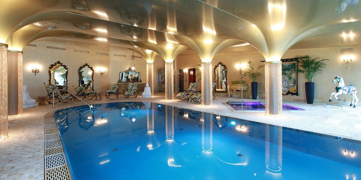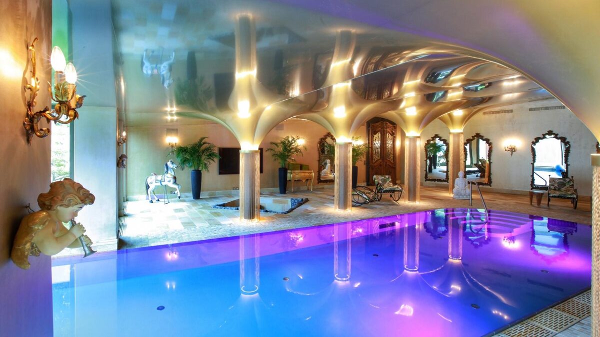 Entering this rental on the ground level, there’s a large hallway with exposed wooden beams, solid stone flooring and antique rugs. This floor houses the main kitchen, staff areas along with a spacious television room, wellness area with massage room, sauna & hammam and some of the smaller bedrooms.