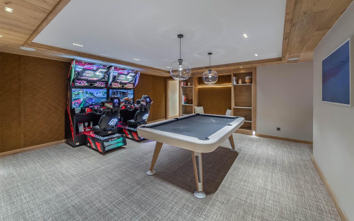 Hidden away on the lower ground floor, the cinema and games room await, along with a flower-adorned indoor pétanque court inspired by Saint-Tropez’s Place des Lices. There’s even a bar/café area so you can sip an apéritif while your loved ones enjoy a game or two.