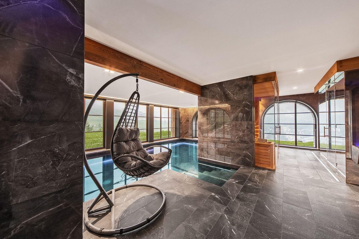 The chalet benefits from an exposed stone staircase or indoor lift to all 6 floors, seamlessly integrating traditional chalet features with modern technology, for easy access to all facilities. There is also an elegant ski room to store all your gear, private heated driveway and underground parking.