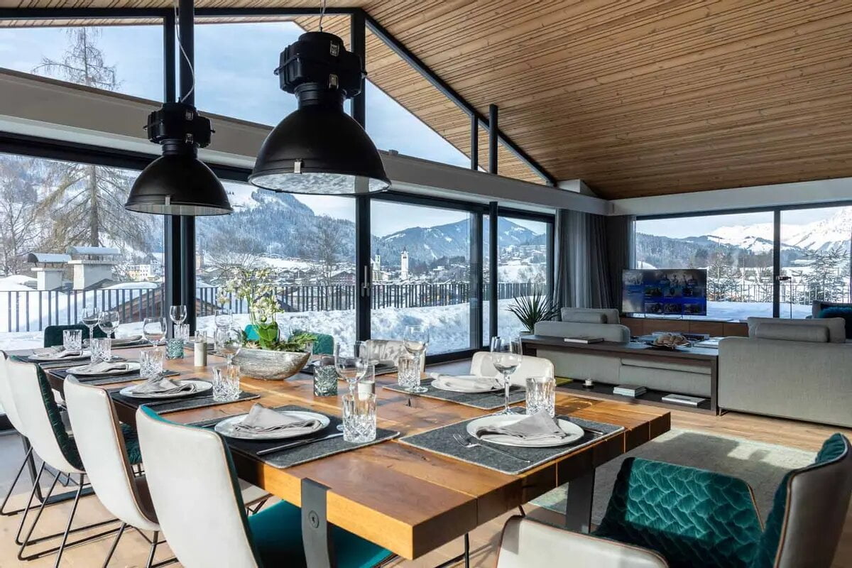 The chalet has an ideal location in the one of the best residential areas in Kitzbühel. Access to the ski area via the Hornbahn is just a five-minute walk from the chalet whilst downtown and the famous Hahnenkamm are only seven minutes away on foot. The chalet offers incredible views over some of the most scenic mountain ranges in the region, including the Wilde Kaiser, the Streif and Hahnenkamm; even extending to the peaks of the southern mountains. The chalet is modern yet inviting, with designer furnishings and state-of-the-art technology.