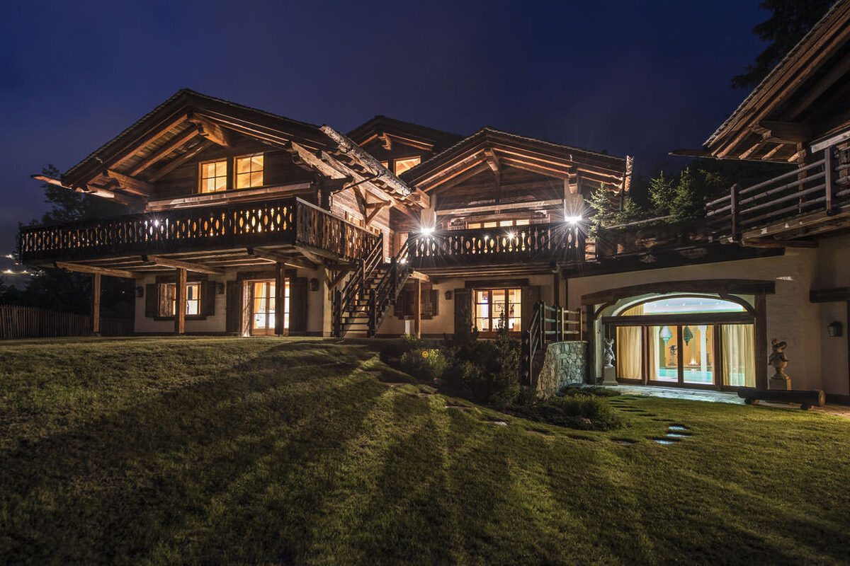 The open plan living room and bar is perfect for parties, and the chalet even has a basement wine cellar with vaulted brick ceiling, stocked with rare vintages. Extra touches such as the Jo Malone toiletries and fresh flowers, and the swish internal elevator take this luxury chalet to the highest level of perfection.
