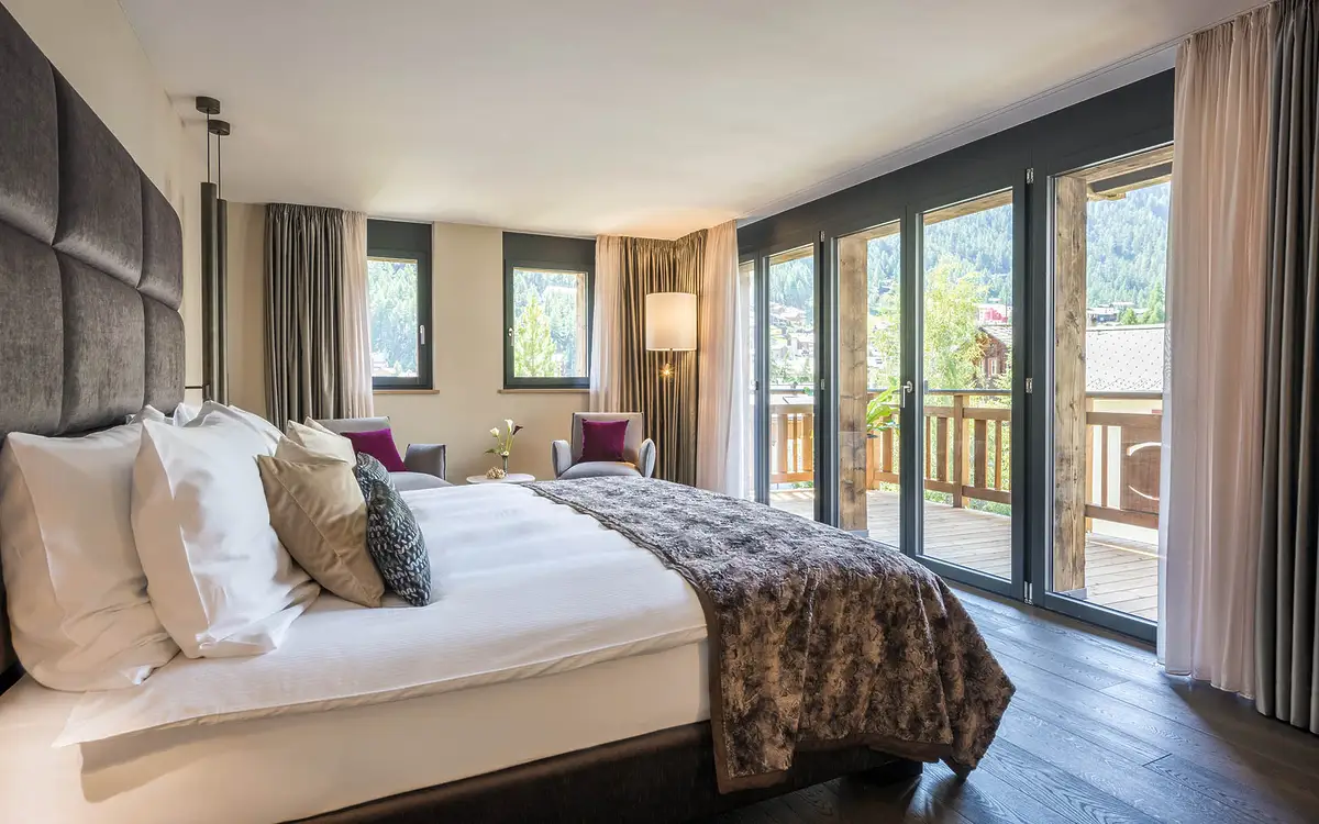 In the afternoons, spend a few hours in the fabulous private sauna easing the strains of the slopes away on your luxury ski holiday, or gather with the rest of your party in the cosy TV room for a film matinee before champagne appears and the evening commences. After a gourmet four-course meal, take your wine out onto the balcony and catch the best view in Zermatt – the stars twinkling on over the iconic Matterhorn.