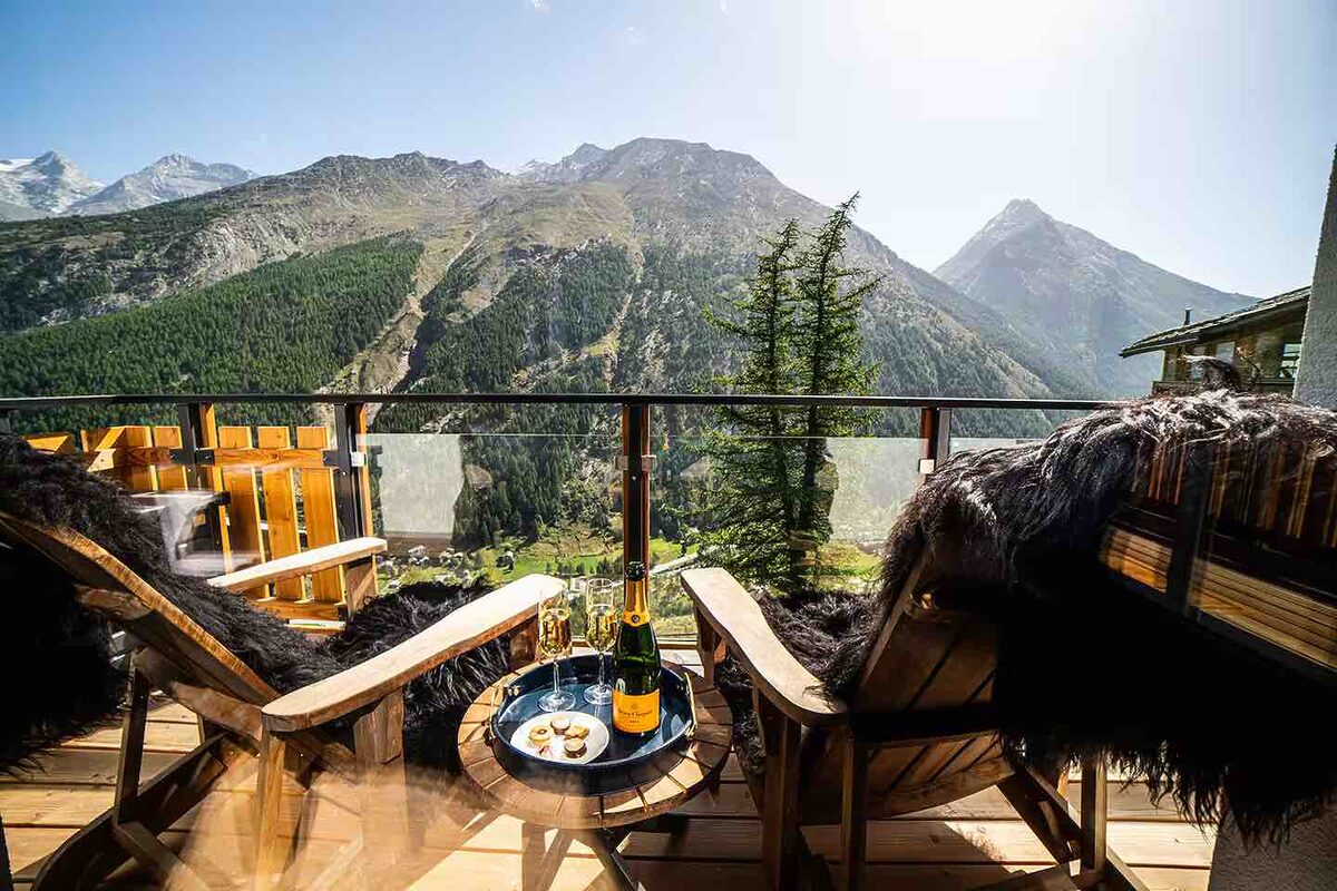 This exquisite boutique penthouse offers breathtaking panoramic views of the Weissmies, Fletschhorn, and the Saas-Almagell valley. Immerse yourself in the stunning scenery as you unwind in the sophisticated comfort of this ultra-luxurious chalet-chic retreat.